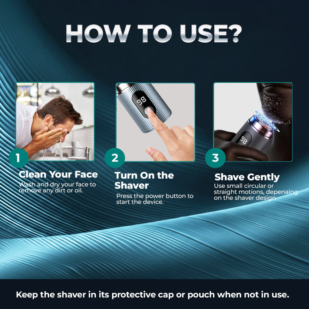 💡 Just 3 easy Steps: Power on → Shave → Rinse the blade head.