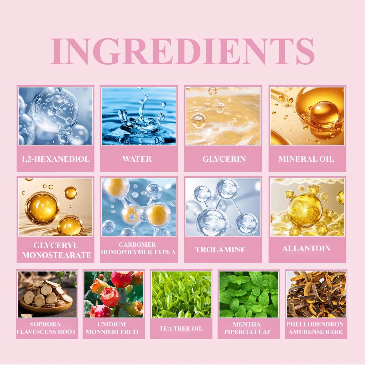 🌸 Cnidium Monnieri Fruit, Carbomer Homopolymer Type A, 1,2-Hexanediol